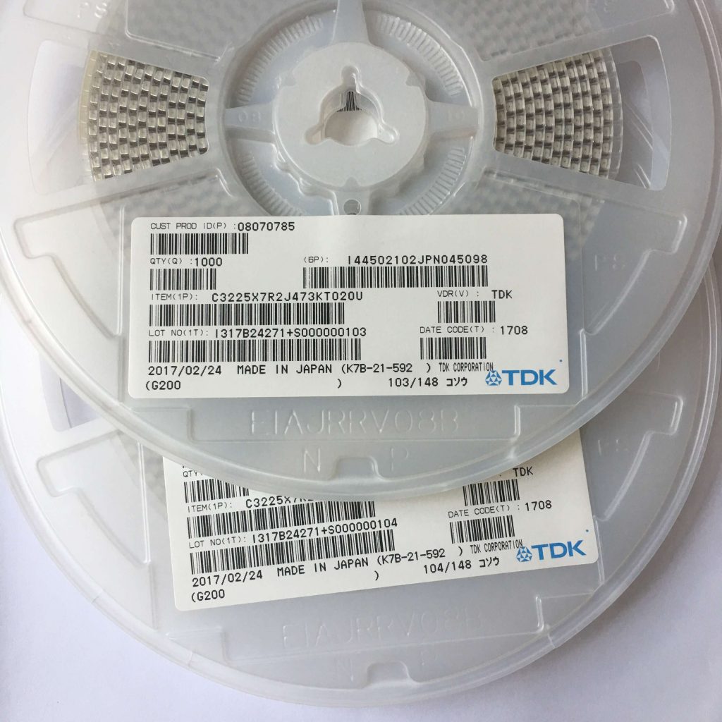 TDK中國總代理貼片電容, 車規AEC-Q200認證 CGA4J3X7R1E225KT0Y0N 0805 X7R 25V 2.2UF 10%